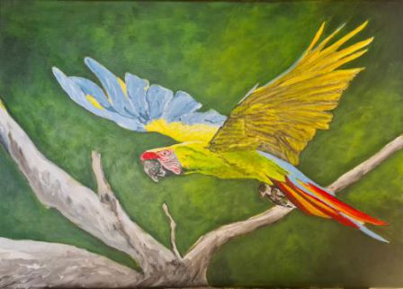Ara im Flug 70 x 50 cm Acryl auf Leinwand
