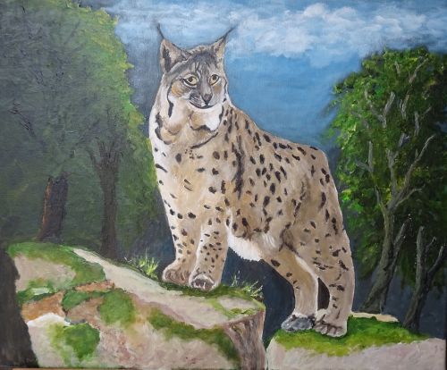 Luchs im Harz 70 x 50 cm Acryl auf Leinwand
