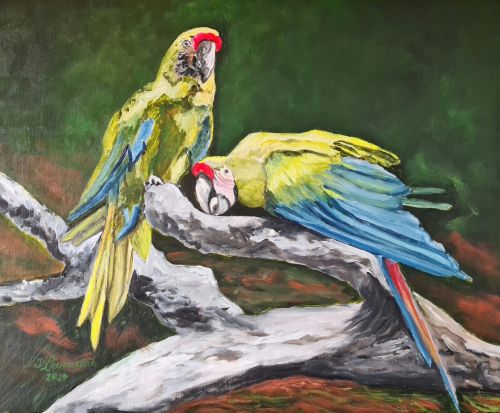 Ara Pärchen im Flug 60 x 50 cm Acryl auf Leinwand